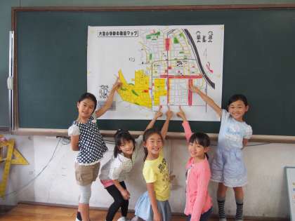 校区探検から帰ってきて,校区の様子を地図に表しました。
