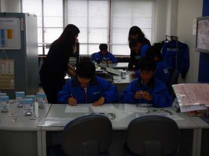 第一ピリオドでは,名刺交換が行われました。京都市スチューデントシティ区役所の○○です。」後日子どもたちに聞くと,普段使わない敬語に悪戦苦闘したそうです。でもとっても丁寧な応対でしたよ。各会社に渡すための書類もたくさん作成します。