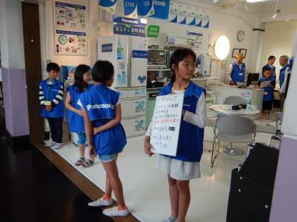 店頭に立ってお客様に声をかけています。緊張と恥ずかしさからかなかなか声が…「お客さん全然来ない!」と嘆いている子も。まだまだこれからですね!でも第一ピリオドからお店をうまくPRできている会社もありました。