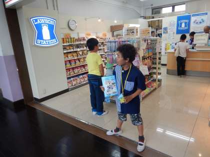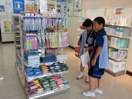 コンビニエンスストアの様子です。どの位置にポップをつけたらお客様に見やすいか考えています…。レジも落ち着いて正確に,でも「ありがとうございました!」のあいさつは忘れません!とても気持ちがいい店内でした。