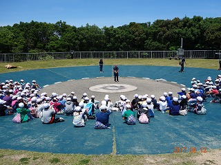みんな後期のほうを向いて、校歌を歌いました。