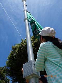 初めのあいさつから、校旗の掲揚と移ります。