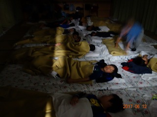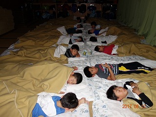 女子の方は、さすがに寝ているところを撮るのはねー。だから、男子の様子だけお伝えします。
