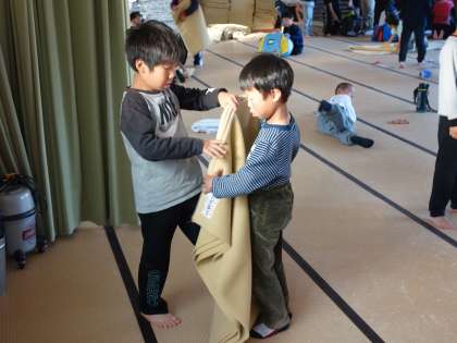 毛布なども、友達と協力して、次々と片づけていきます。