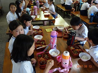 みんなでいただきます をしてから食べ始めました。