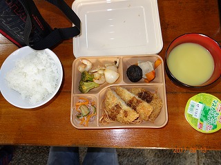 トンカツが入っているね。コーンポタージュもついています。