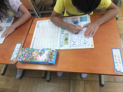 今日からカタカナの学習が始まりました。良い姿勢,良い鉛筆の持ち方を意識して日々取り組んでいます。