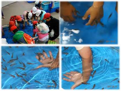 面白かったのは,「ドクターフィッシュ」という魚。手を入れると,肌をツンツンとつつきに来るのです。私が手を入れると,子どもたちの比較にならない位に,魚が群がってきたので,得意になっていると,ある男子が説明してくれました。