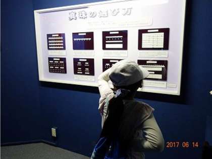 更に,一生懸命パネルをよむ女子。パネルには,こう書かれています。「真珠の選び方」。将来の彼氏は,ジュエリー選びは慎重に。