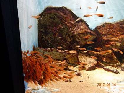 小さい魚が群れています。スイミーというお話を思い出しました。