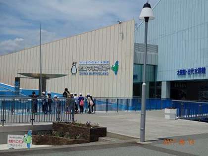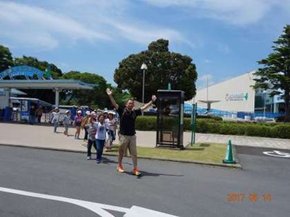 水族館ともお別れ。これで,今回のすべての活動が終了です。後はバスに乗って,カエルだけ。水族館の出口の木ですが,マンボウの木です。