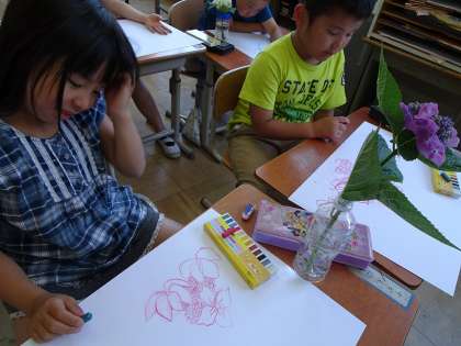 写生をしながら子どもたちはたくさんのことに気付いています。