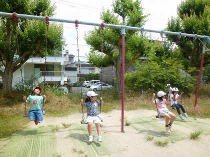 生活科の時間に,鹿ノ下公園に夏みつけに行きました。「先生〜バッタ見つけた!」「先生〜はっぱいっぱいや〜」など声が聞こえてきました。そして,みんなで公園で遊びました。