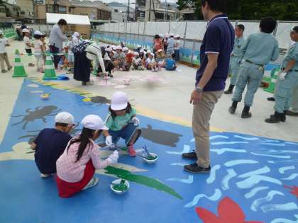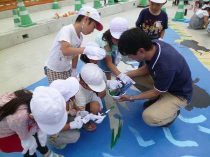教頭先生に教えていただいて,みんなで少しずつ色を塗りました。