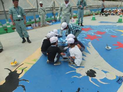 橋に絵を描くなんてめったにできない経験をしてきました!!みんなで少しづつ絵を描きました。初めての経験でみんな楽しそうに真剣に取り組んでいました。