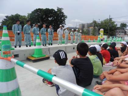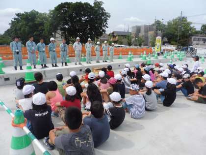 100周年記念事業の一環で,現在,工事中の御薗橋のコンクリート下地に絵を描きに行ってきました。