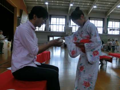 いつもは元気に走り回っている女子も浴衣を着て,しっとりと落ち着いた作法でお運びをしてくれました。