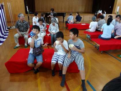 体育館が賑わっています。子どもを中心に,地域・学校がつながっていることを感じます。蒸し暑い中でしたが,たくさんの方のご協力をいただき,ありがとうございました。