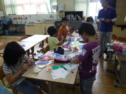 そらいろでは,たなばたの飾りや願い事を天の川に飾りました!教室前廊下の上に飾りが!「すてきやね!」と通った方から声をかけてもらいます!