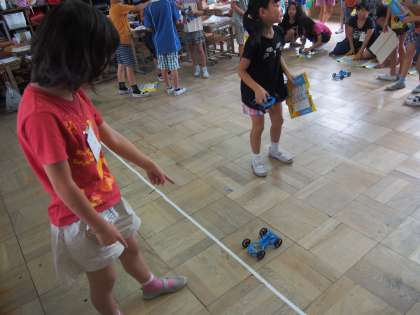 ゴムを伸ばす長さによって,車が動く距離がどのように変わるのかを