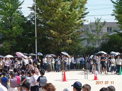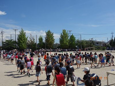 運動場に出て,各クラスの点呼が終わるまでに,7分。