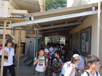 「暑いなー」と1年生に声をかけると,「体育館よりまし」。