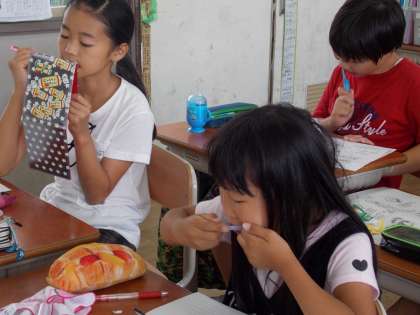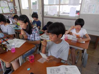 コツをしっかりとつかんで,歯の場所によるみがき方を確認しました。