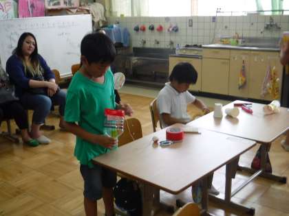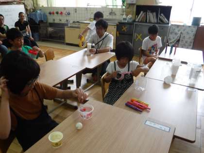 今日は,図工の時間にオリジナルのけん玉を作りました!ひもの長さを調節してよく入るけん玉をつくりました。お昼休みには,みんなで「せーの!」とかけ声が聞こえてきました。