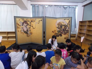 風神雷神の本物そっくりのレプリカを前に,色彩や構図についてレクチャーいただきました。