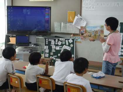 PTAサークル おはなしの会 もこもこさんが来られました。みんないつもどんなお話を読んでもらえるのか楽しみにしています。「まほうカメラ・ひゃくにんのおとうさん・どろだんご・たなからぼたもち」の4冊を読み聞かせしていただきました。ひゃくにんのおとうさんのお話は,みんなの想像力で大盛り上がりでした。来月は3日です。楽しみにしています。ありがとうございます!よろしくお願いします。