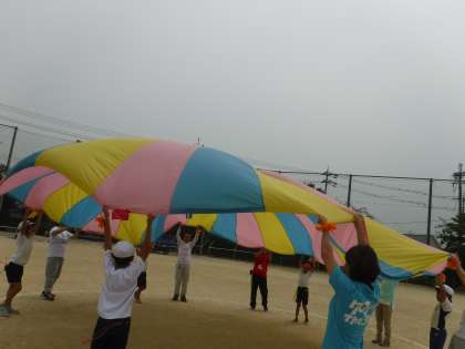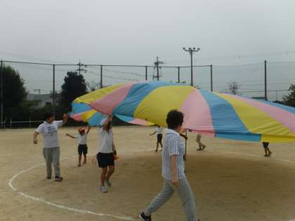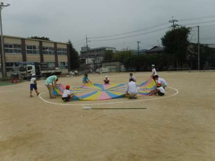 今日の体育の時間は,そらいろのスペシャルサポーーター(給食調理員さん・管理用務員さん・事務職員と一緒にそらいろの演技の練習をしました。忙しい中,ありがとうございました!練習は,手もビシッとあがりカッコよかったです。本番もよろしくお願いします!
