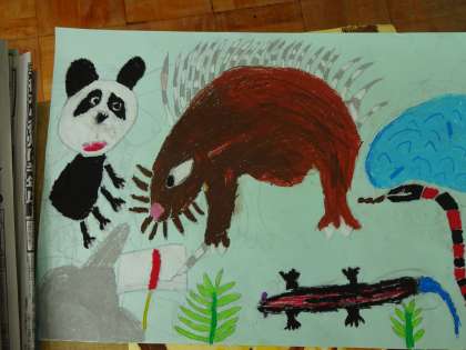 想像を広げて絵に表しました。