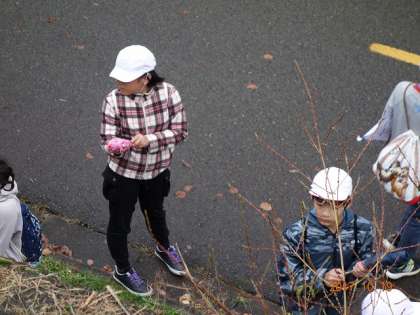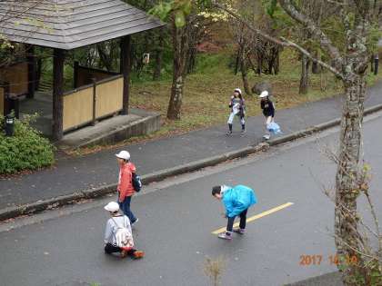 「校長先生が、写真撮ってはんで!」という仲間の声に、あわてて起き上がる。
