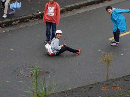 散歩のようにも見えますが、疲れたのか、地面に寝転がっている男子発見。