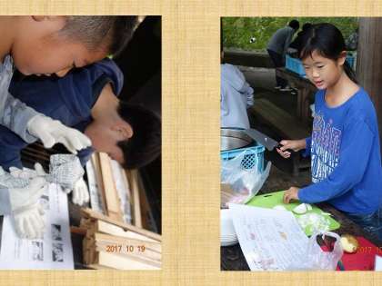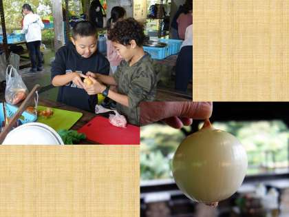 玉ねぎを刻んでいる子、「もー! もー! 目が痛い!」と怒りの涙を流しながら作業中。