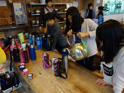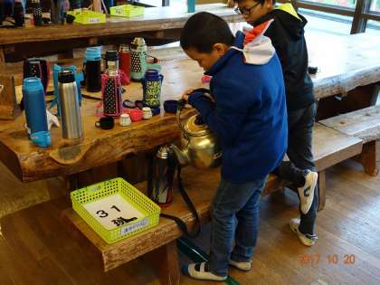 生活係の子どもたちが、自分のグループのお茶を入れます。