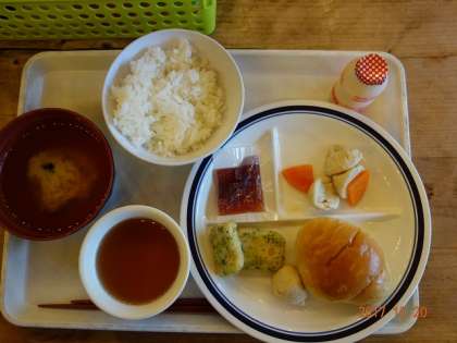 私は、ご飯とパン(子どものを真似しました)