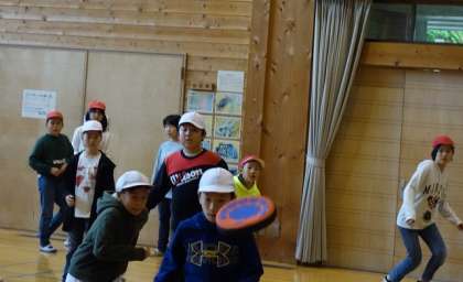 だんだん上達してきました。投げられたディスクを、「ハッシ」と受け止める子どもたちの出現。進化している・・・