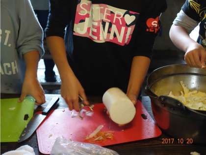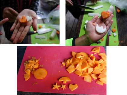 昨日とよく似たシチュエーションなのですが、野菜で何かを作っています。