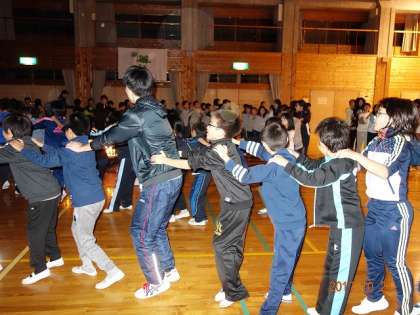 大蛇が終わったと思ったら、突然「右 右 左 左」の列車のようにつながって踊るのが始まりました。