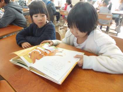 ペア読書をして,感想をもらうと嬉しそうな上級生!