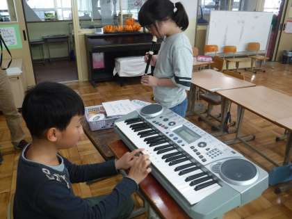 今年は,「森の中のおかしな家」を発表します。音楽の授業で練習している曲を演奏します。リーダーの二人は休み時間も練習して合わせています。背景の絵や小道具・お菓子の家をみんなで作りました。いよいよ,来週が本番です。ドキドキしますがみんながんばります!あたたかい応援をよろしくお願いします。