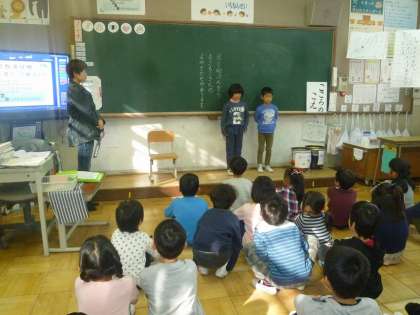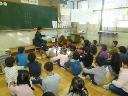 もこもこさんの読み聞かせ2回目がありました。今日は『ひつじのラッセル』と『ヒヨドリのピピのおはなし』を読んでもらいました。みんな興味深々で聞いていました。もこもこさん,ありがとうございました。