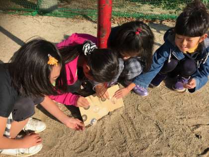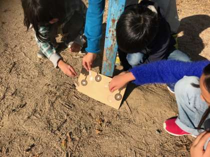 理科の学習で,虫めがねを使って光を集める実験をしました。