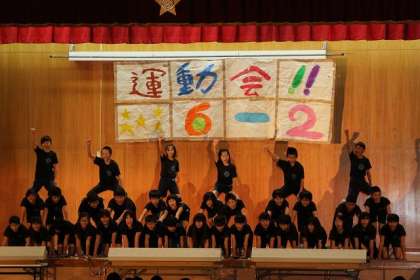 舞台上のピラミッドは,お見事! 組体操で練習しただけのことはあります。