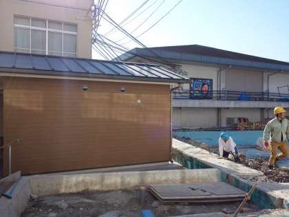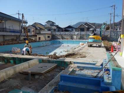 プールの方も,工事が始まりました。近隣の皆様には騒音などでご迷惑をおかけしています。