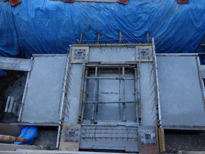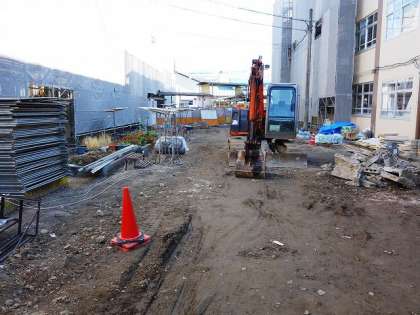 上の写真は,エレベーターの工事現場。第四校舎の西側寄りに設置されます。思っていたより,はるかに大がかりな工事です。