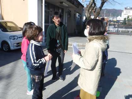 15日に行う小中交流会の招待状をもって柊野小学校に行ってきました。元気にあいさつをして招待状を渡すと喜んでもらえました。「すきな遊びは?すきな歌は?すきなおやつは?」と質問してお互いのことがわかり「にこにこなかよしともだち会」が楽しみになりました。