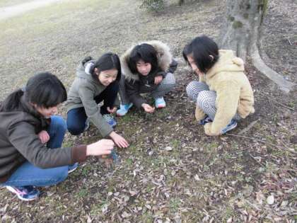 ゆっくり歩いて見てみると…「結構ごみあるな〜」や「この木は?虫がいっぱい」「すわるところがたくさん!」と様々な感想や疑問をもったようです。河川敷の近くまでおりて,賀茂川の秘密をたくさん見つけることができました。