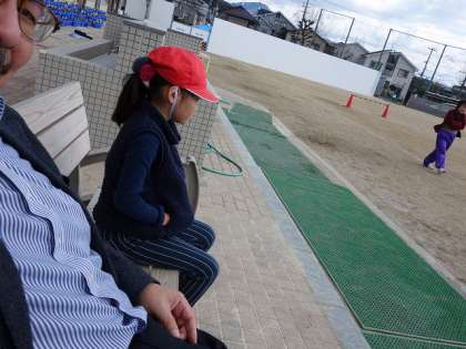 昨夜の雨と強風からは考えられないほど,穏やかな天気。陽射しも温かく,思わず体育の見学をしている子の隣に座ってほっこり。